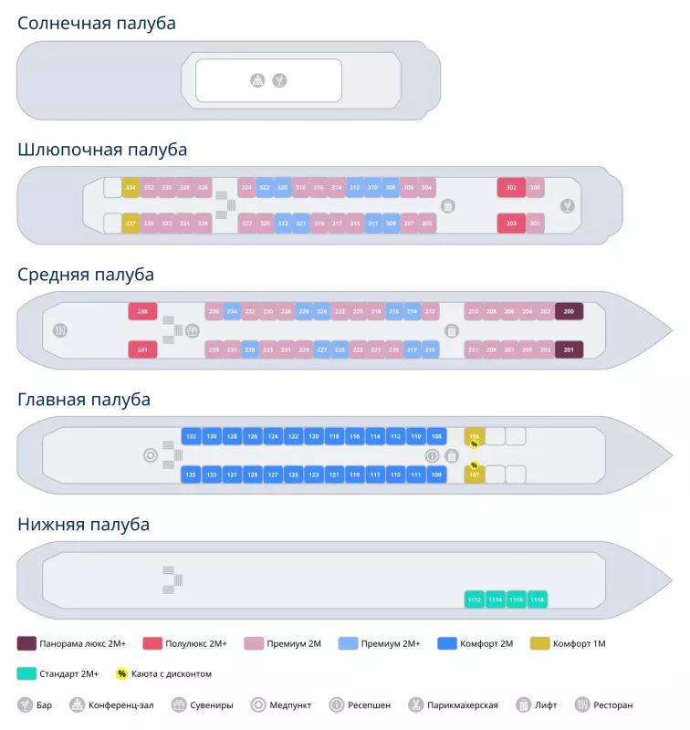 Четырехпалубный теплоход «Тихий Дон» был построен в Германии в 1977 году и полностью реконструирован в 2011 году. Это роскошное судно рассчитано на прием 210 пассажиров, для размещения которых представлены 107 комфортабельных кают. В оснащение кают включены: душ/туалет, холодильник, кондиционер, радио, телевизор, внутренний телефон, сейф, фен. Теплоход гарантирует своим гостям максимум безопасности и комфорта во время отдыха. На борту теплохода имеются бар с лекторием и салон-бар, ресторан, сувенирный киоск и кабинет врача. Теплоход оборудован пассажирским лифтом. Ранее теплоход обслуживал иностранных туристов.